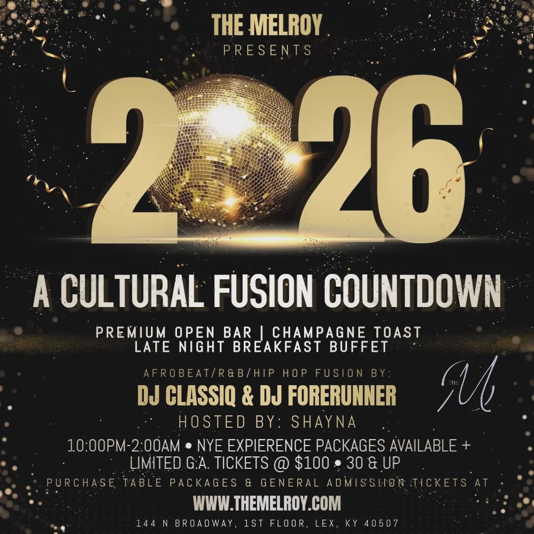 Ring in the New Year at the most beautiful lounge in the city with an unforgettable night of sound, style, and global rhythm. Cultural Fusion Countdown is a NYE celebration of Lexington's present cultural richness and the future of hope it never changes!